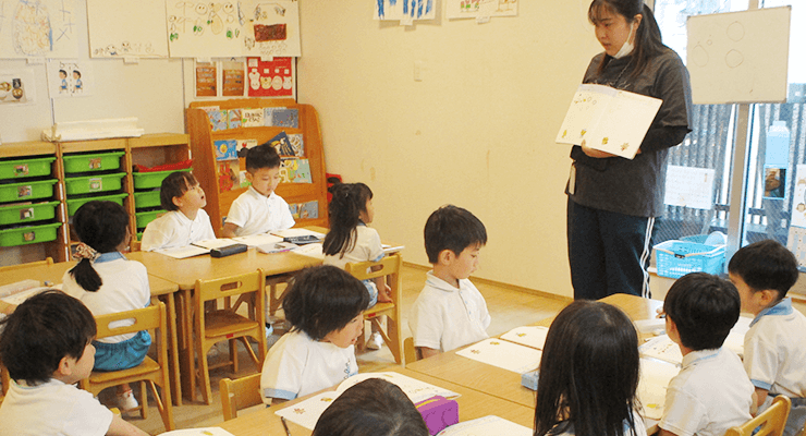 異文化交流として、ネイティブの英語に触れ、歌や体操を楽しんでいます。