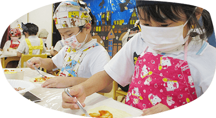 お友だちと一緒にするクッキングや野菜の栽培を通して、食に対する興味を引き出し、何でもおいしく楽しく食べることができるようサポートしています。