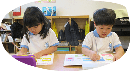 就学に向けての集中力を育てていく為に、4歳児から運筆練習に取り組んでいます。ワークを計画的にカリキュラムに取り入れ、それぞれのペースで進めています。