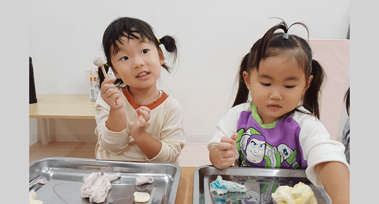 こどもたちの五感を刺激して創造性を伸ばします。センサリープレイには決まった遊び方はありません。こどもたちが自由に発想し、素材に触れたり、試したりする中で、表現力や探求心を育みます!