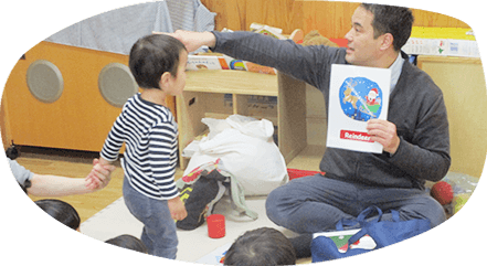 毎月、0歳児クラスからネイティブの先生と英語遊びの時間を過ごします。聴力の優れた幼い時期から日本語とは違うHz数の音に触れ楽しみながら学んでいきます。