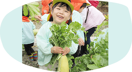 お芋ほりや大根抜きなど自然に触れることができる近くの畑での活動がとても楽しそうです。