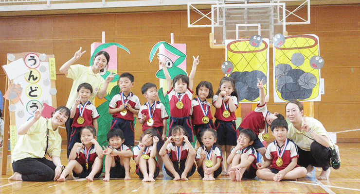 継続的な体育活動で体力の向上を目指しています。体験を通して頑張ることの大切さや、達成感、友達を応援する優しさなど、心の成長も育みます。