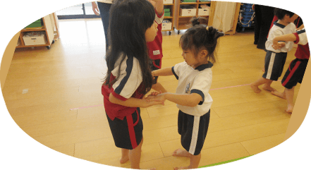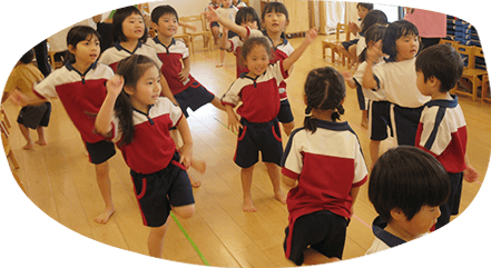 専門の講師が来園し、歌を歌ったり、身体で表現をしながら、楽しく、自然に英語に親しみを持てるように取り組んでいます。