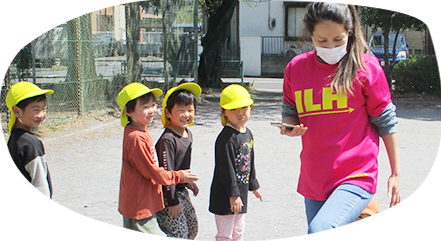 3歳以上は月に2回英語の時間があります。月ごとにテーマが変わるのでこどもたちもわくわくして参加しています。