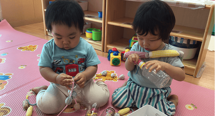 保育室にいろんなおもちゃが用意されていて、手作りのおもちゃも多く、それぞれが好きな遊びを楽しめるのがいいなと思っています。