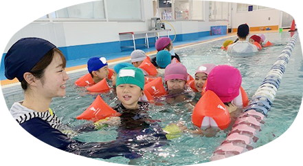 年間を通して行うことで、水に慣れ親しみ泳ぐ楽しさを体験します。4・5歳児クラスは5月から、3歳児クラスは秋ごろから始めます。