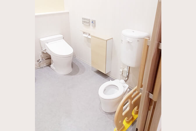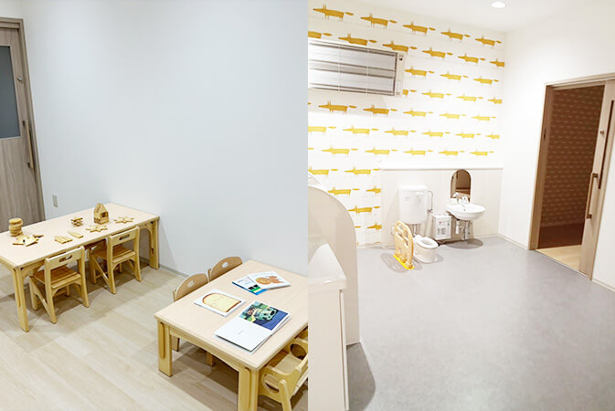 そんな時も安心してご利用いただけるよう、mamocco(まもっこ)には広々とした「親子トイレ」(多目的トイレ)をご用意しています。