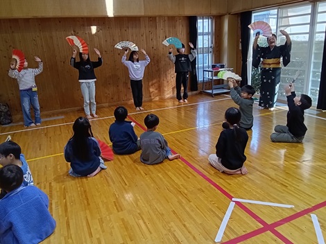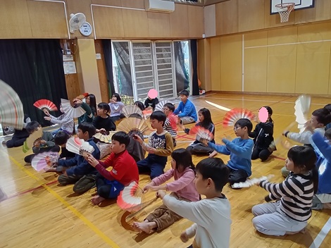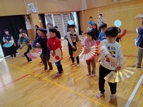 2月12日(木)PM3時〜毎年恒例の『日本舞踊の会』を実施しました。ボランティアさんが、扇子の扱い方から指導して下さり、簡単な振り付けで、子ども達が知っている曲に合わせ、踊りを伝授下さいました。日本の伝統文化に触れる貴重な時間で、子ども達も扇子が珍しく嬉しかったようです。