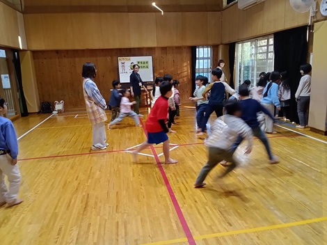 9月11日(木)に、大宮小学校放課後教室と児童クラブの合同で、「お宝取り鬼ごっこ」、別名「スポーツ鬼ごっこ」を実施しました。指導者の方にレクチャー頂きながら1時間ほどでしたが、とても楽しい時間を過ごすことが出来ました。初めて体験する子がほとんどでしたが、「楽しかった)、「またしたい)という声がたくさん聞かれました。好評だったこともあり、次回は11月を予定しています。一般来館のこども達にも是非参加し、楽しんで貰えたらと思います。