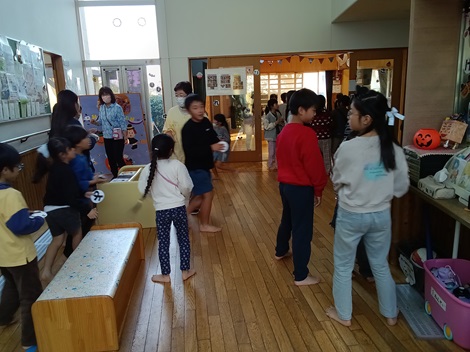 10月30日(木)PM3:00〜今年もハロウィンにちなみ【ハロウィンパーティー】を実施しました。たくさんの子どもたちが参加し、チーム対抗のゲームを楽しみ、盛り上げてくれました。最後の紙コップ落としは、ハラハラドキドキで、応援する声も大きかったです。最後にちょっぴりお土産を渡し、終了しましたが喜んでくれた子どもたちの笑顔が印象的で、やりがいを感じる瞬間でした!