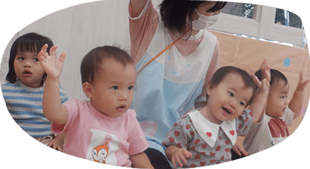 曲に合わせて手遊びや体操を行うことで自律神経の健やかな発達を促します。また聞こえた音楽を表現することでコミュニケーション能力を培います。