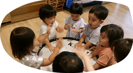 少人数の園なので、年齢関係なくお友達の名前を覚えていたり、一緒に遊んだり、2歳さんが0歳・1歳さんのお世話をしてくれることもありますよ。