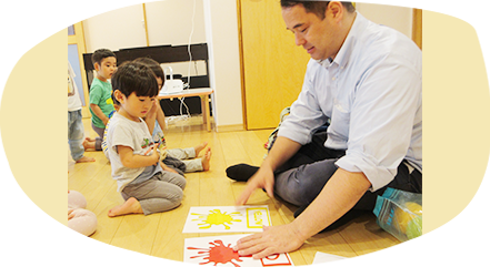 外国人の先生とうたやことばを通して一緒に楽しみ、ネイティブ英語に親しみます。