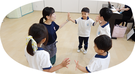 - 相手や自分を大切にする思いやりや行動で笑顔に包まれる保育を行います。
