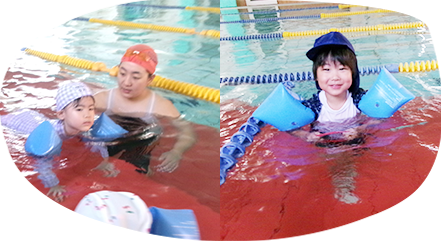 幼児クラスは月に2回 塚口スイミングスクール「ティップネス」で専属コーチからプールの楽しさを教えてもらっています