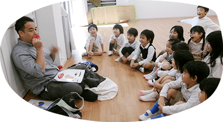 0~5歳児全クラスに専門の講師が来てくださり、音楽に合わせて踊ったり、発音を聞いたり、発音したり楽しんでいきます。