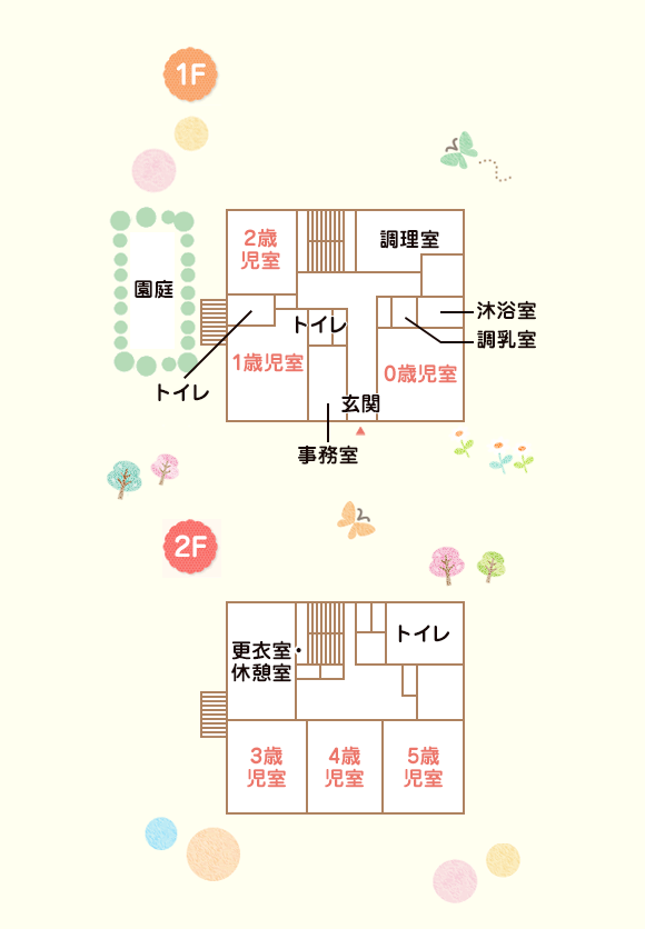 - ふかふか芝生の園庭に、トンボや蝶々がとんでくる自然あふれる場所
