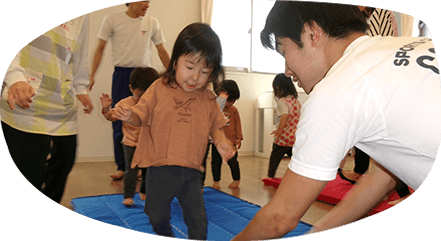 コスモスポーツから専属講師に来ていただき、こどもの発達に応じたプログラムを設定し、身体を動かすことを楽しみます。